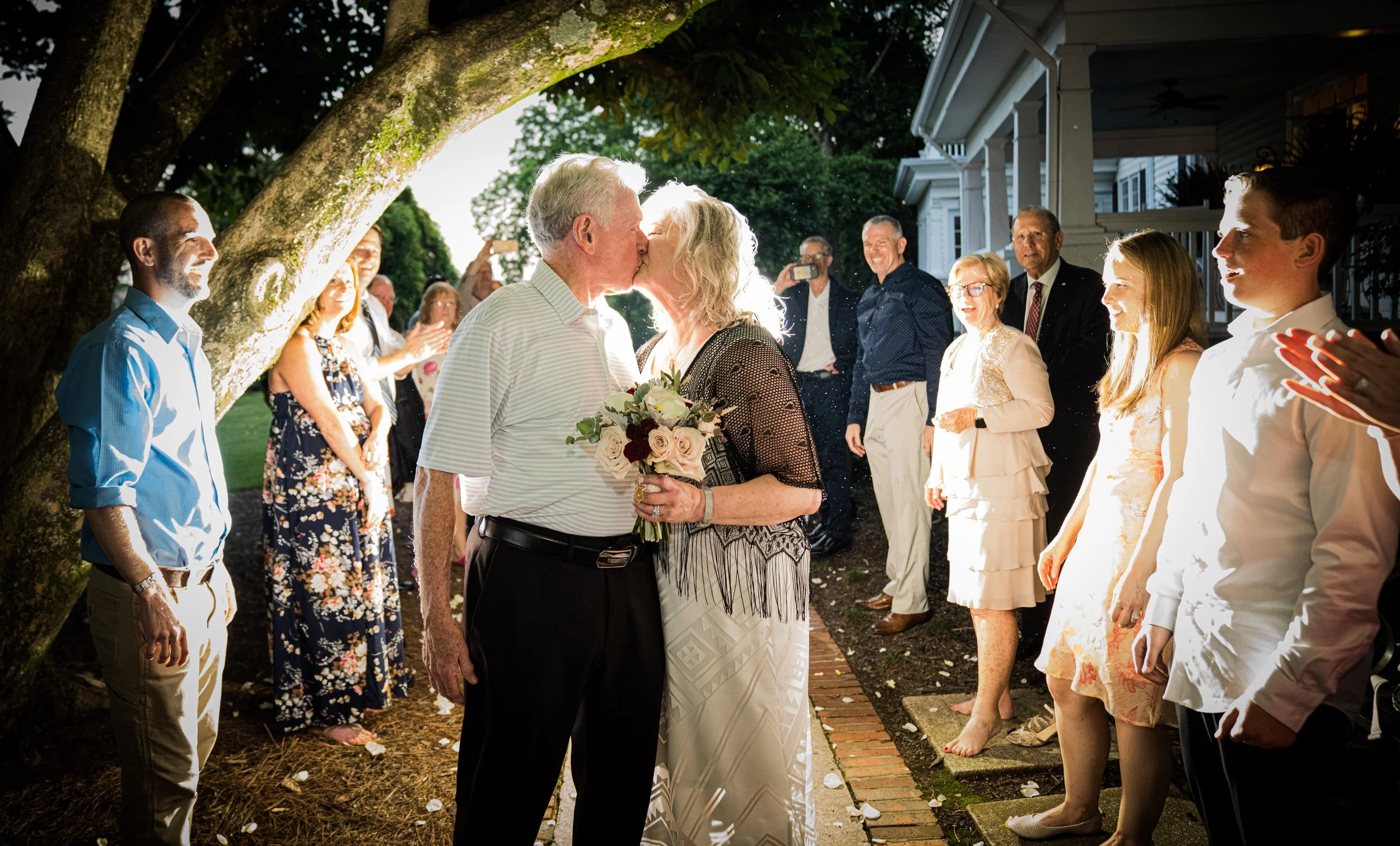 We arrived at the Gazebo and put Bob into place. He was facing me with his back towards the historic Payne Corley House where his bride was. I was texting the other photographe, who was Alex with the bride and she gave me status reports on what the bride was doing. While waiting I started a conversation with Bob. In those few minutes I learned that he lost his first wife to cancer. He also retired from the Air Force after 20 years, and then did 15 more years for UPS in Atlanta. In those moments I saw his passion for service and love for the people in his life. After his wife passed away he wanted to pursue things that kept him interested in life and kept him active. One of those pursuits was ballroom dancing. He told me how he became a competitive dancer and how he shared this passion with Vickie. Vickie was not going to be left behind and picked up dancing. She was a true natural. They participated in dance groups and shared a new set of friends. After the first look the couple had a few moments to talk and then it was time for the ceremony.
