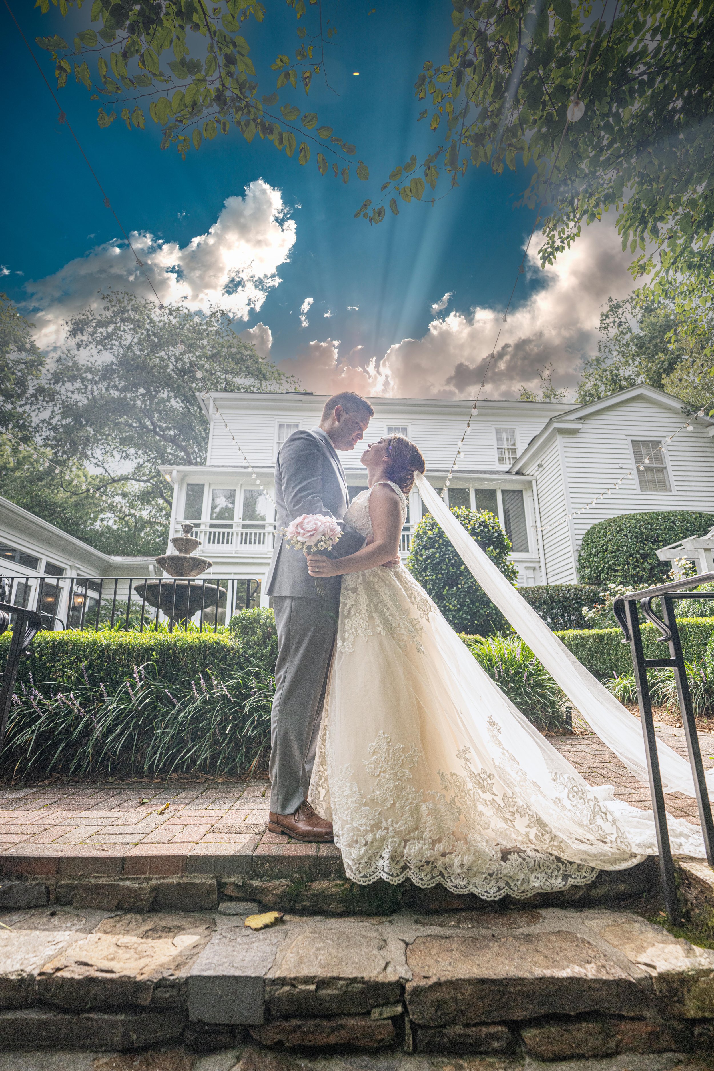 I recently shot at Primrose cottage. Primrose is one of many houses built for Roswell King in the Roswell Historic District. It is listed in the National Register of Historic Properties. There is a large upstairs bridal suite that can be broken out into two rooms. There is a large room and a bar for the groomsmen to get ready downstairs. In the back of the house is a Veranda that overlooks the English Gardens which makes for a beautiful backdrop for photos. The front of the house is stunning also. It is adorned with large columns on the porch. There is also a large ballroom in the rear of the house that can accommodate many guests and keep cool in the Georgia summers.