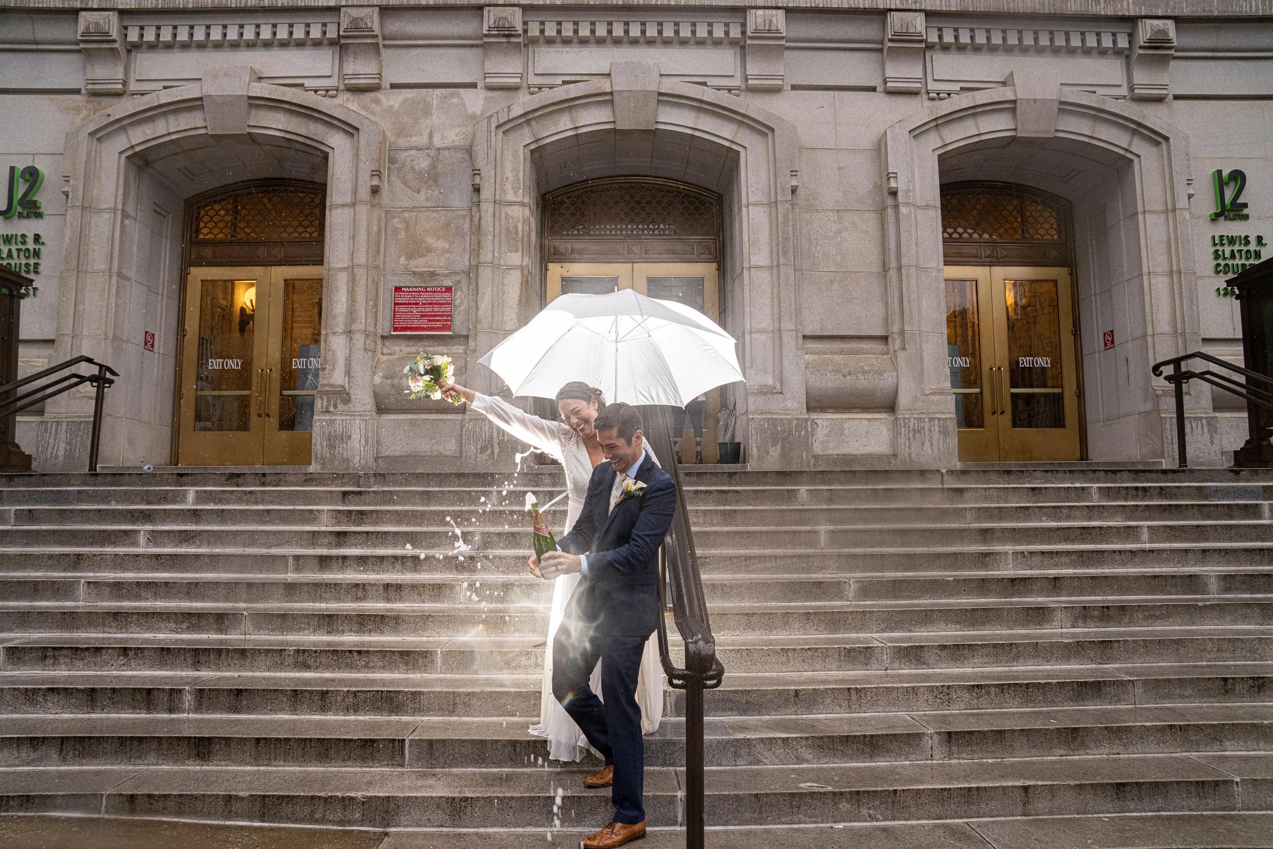 One of the first weddings of this year was close to my heart. Tara, my second Atlanta photographer, got married at the Dekalb courthouse to longtime boyfriend Joe. They were going out of the country to have a reception with the family and friends but wanted to get married in the states before they left so they got their marriage license at the courthouse. It happened to rain on that day but that did not dampen their mood. We took some playful photos outside the courthouse and I gave them some champagne to celebrate their first night as a married couple.