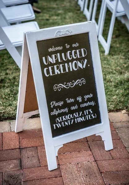 Nowadays, it’s very common for couples to have an unplugged ceremony, unbothered by cell phones. This doesn’t always go over well with guests, who want to capture this special moment in the couples life. However, if you have a social media minute, one minute at the altar where you give the guests their phones and let them take as many pictures as they want for that one minute before putting them away again, this is a great compromise that most can live with.