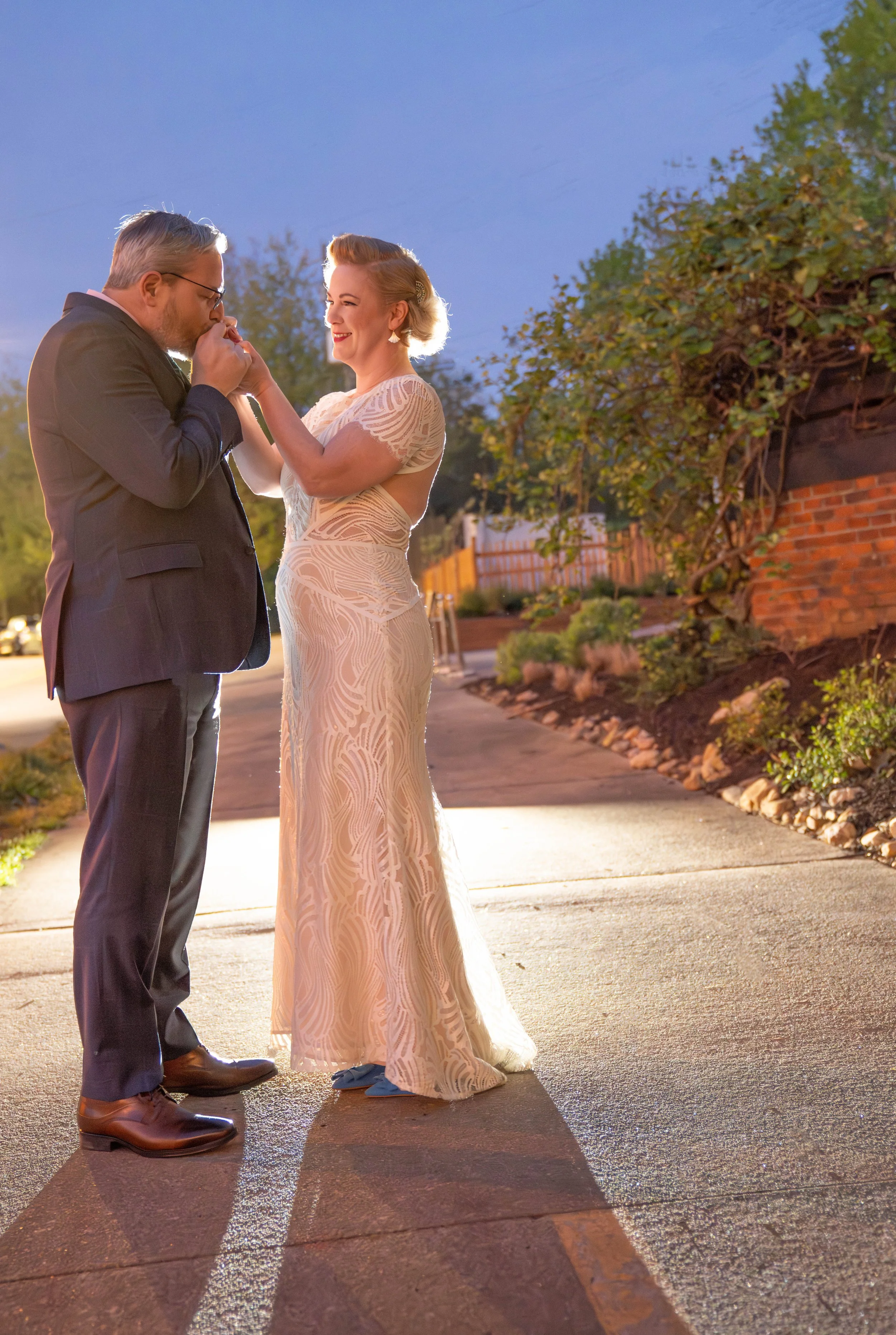 The wedding venue was The Kimball House, which is not only a great restaurant, but the perfect wedding venue for a small wedding in Decatur. The name comes from the historic Kimball House Hotel, which opened in the late 1800s and was razed in 1950 in downtown Atlanta. The Kimball House restaurant is the remodeled historic Decatur train depot built in 1891 off of the Decatur Square near Agnes Scott College. The restaurant still has the original train tracks beside it, along with the wrap-around loading dock. The interior has the original refurbished wood floors where you can see the remnants, of where it has been worn from freight and passengers. It has been a Decatur landmark for many years!